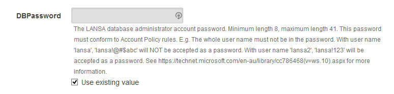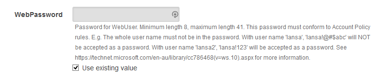1. Click the Use Existing Value checkbox on the two parameters which use it: DBPassword and WebPassword. You must do this otherwise the Stack update will fail.