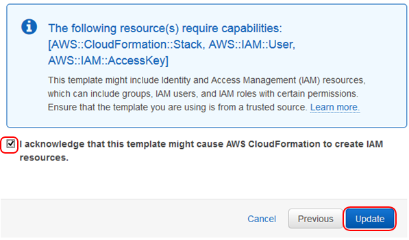 7. Scroll to the end of the Review dialog and acknowledge the capabilities, then click Update: