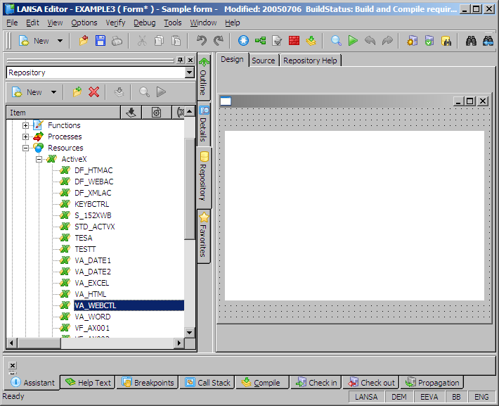 現在地: Visual LANSA 開発者ガイド > 2. グラフィカル・ユーザーインターフェース・アプリケーションの作成 > 2.28 リポジトリのリソース > 2.28.1.8 ActiveXコントロールの使い方