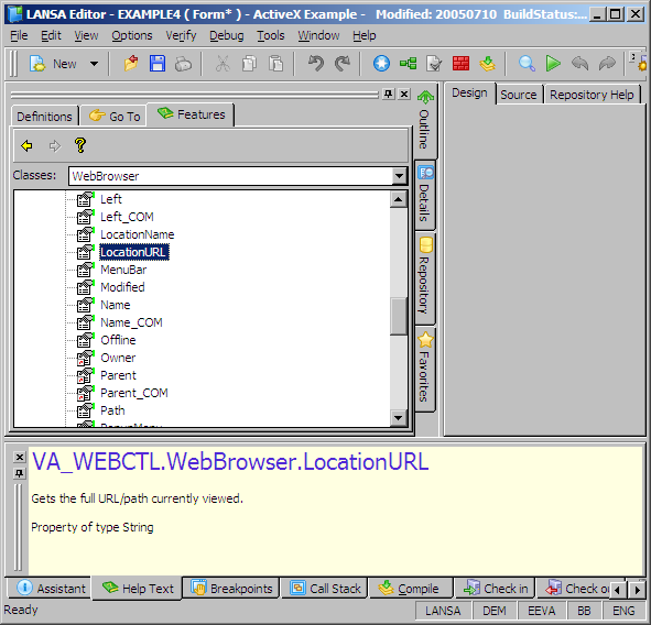 これにより、詳細タブに切り替えたとき、メソッドやイベント、Visual LANSAプロパティにアクセスできるようになりました。